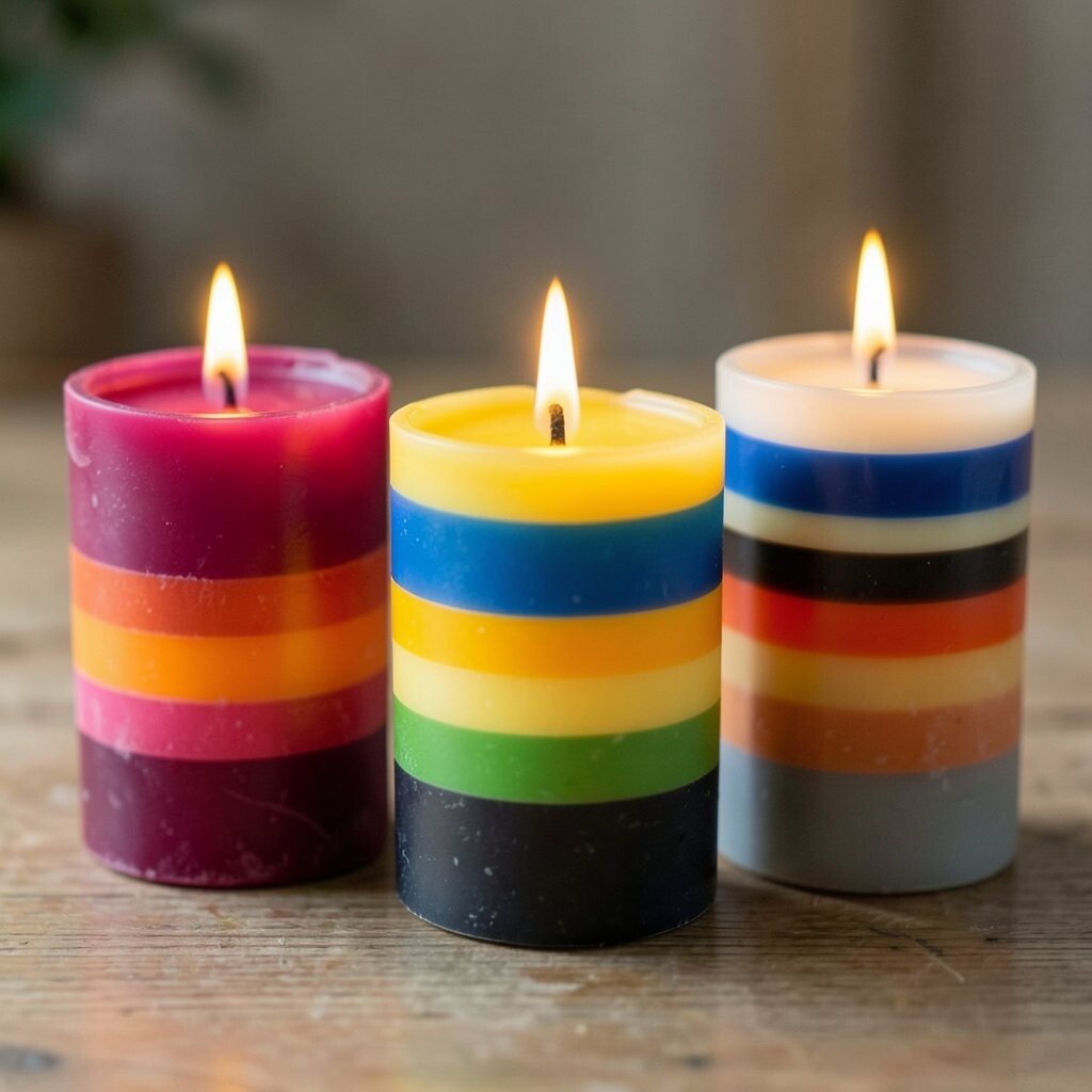 These candles are perfect for gifts or personal use. They create a cozy atmosphere and are easy to make. Choose complementary colors and scents for a harmonious feel.
