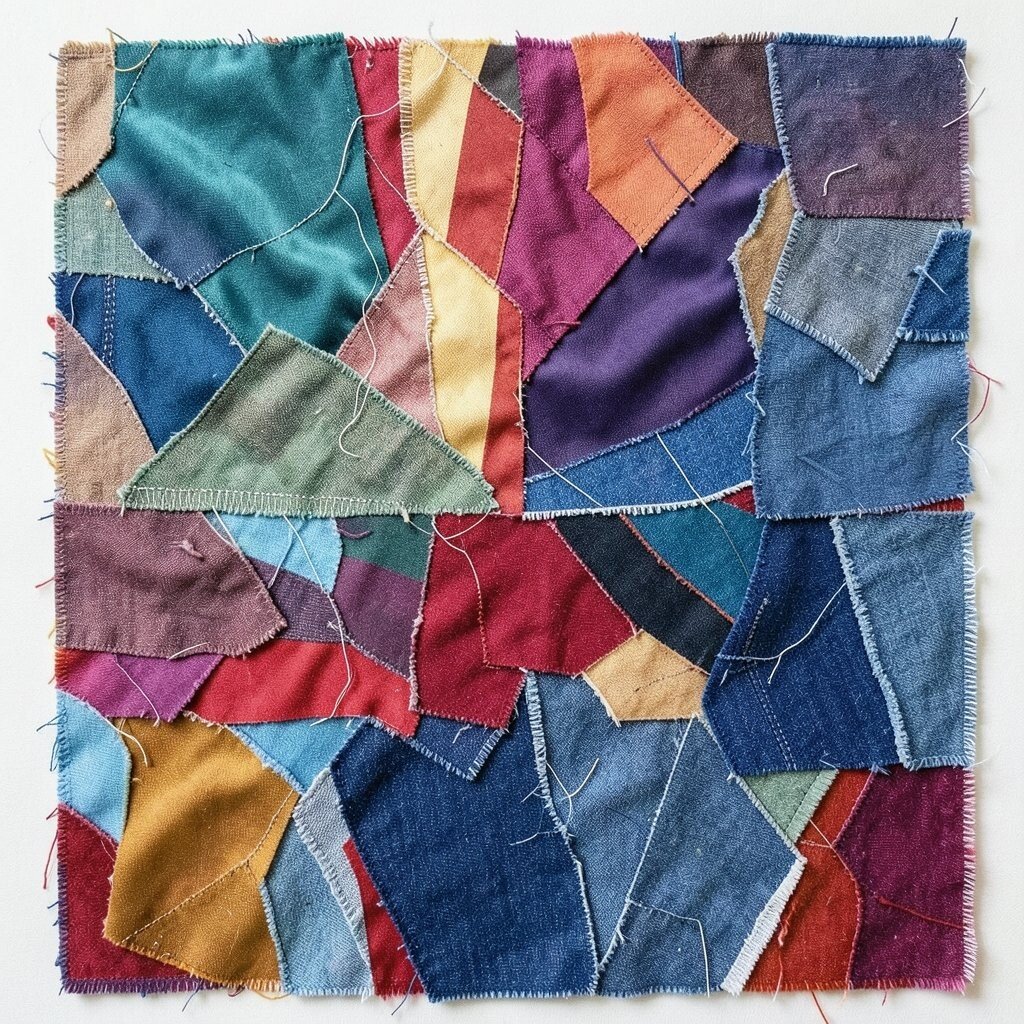 This art form is perfect for recycling old clothes. It’s personal and filled with memories. You can use various textures like silk, cotton, or denim to add interest.