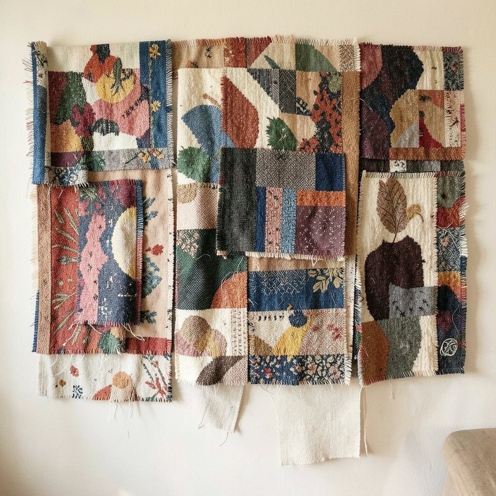 It’s a great way to use up fabric scraps. Plus, it adds a cozy, handmade feel to your space. You can create patterns or go for a more abstract look.