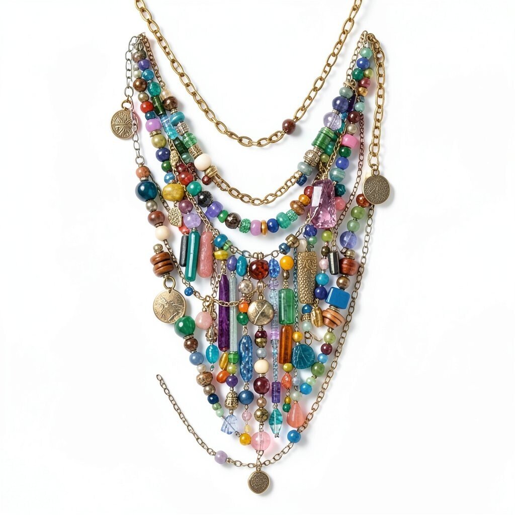 Layering jewelry can be like telling a story with beads and chains. Think necklaces that cascade down in a waterfall of colors and textures. Each piece adds its own unique flair.