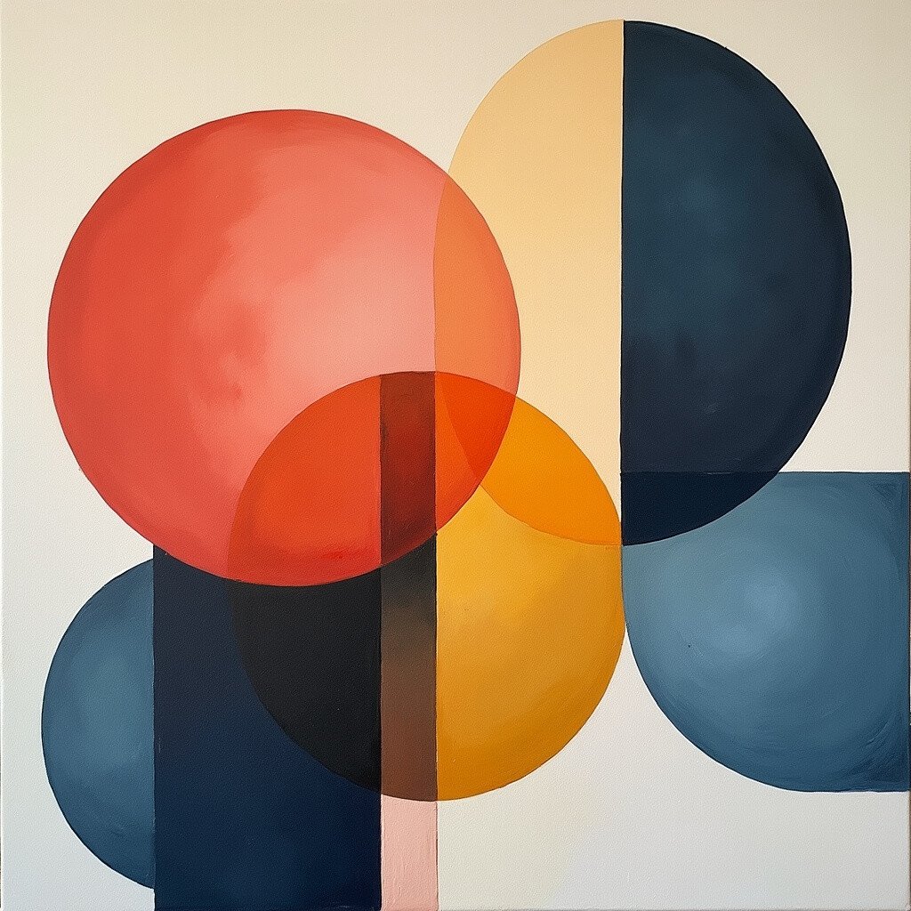 Abstract art is often about finding harmony between chaos and order. Contrast structured elements with free-flowing forms.