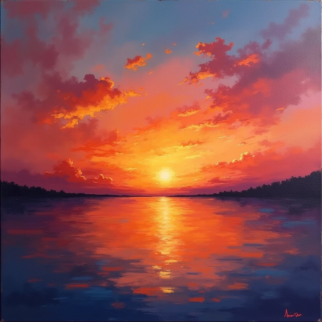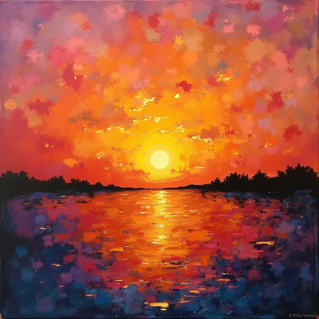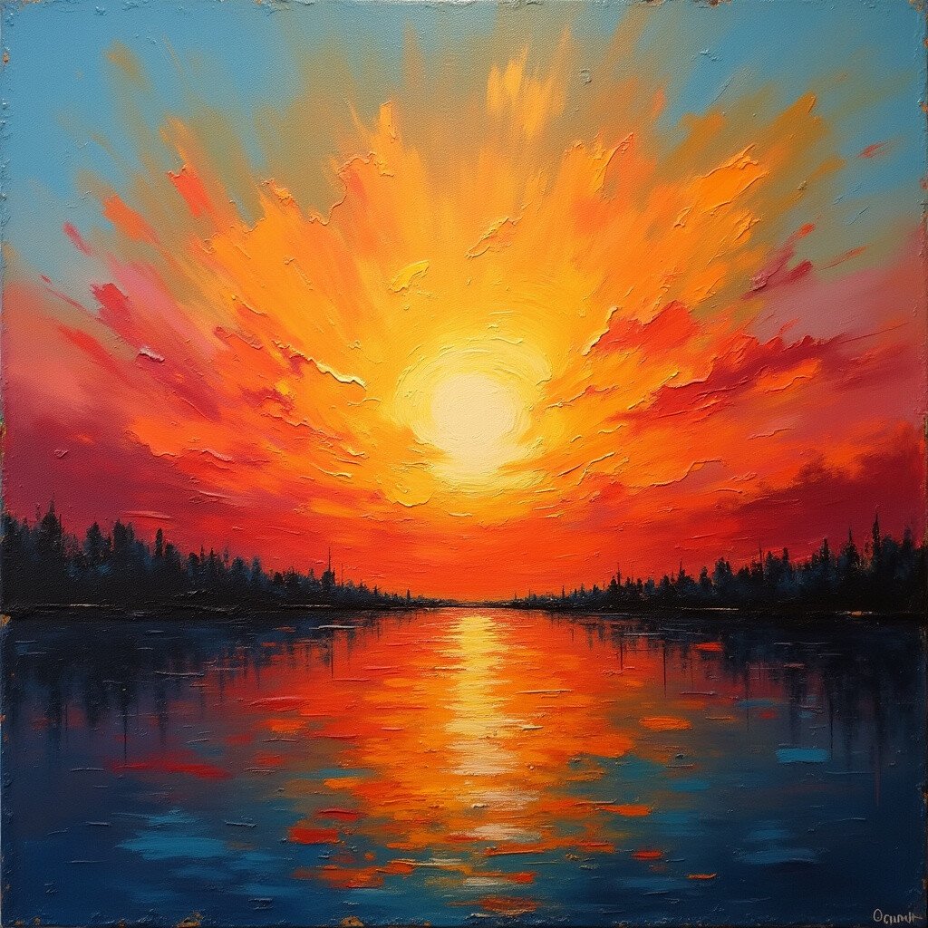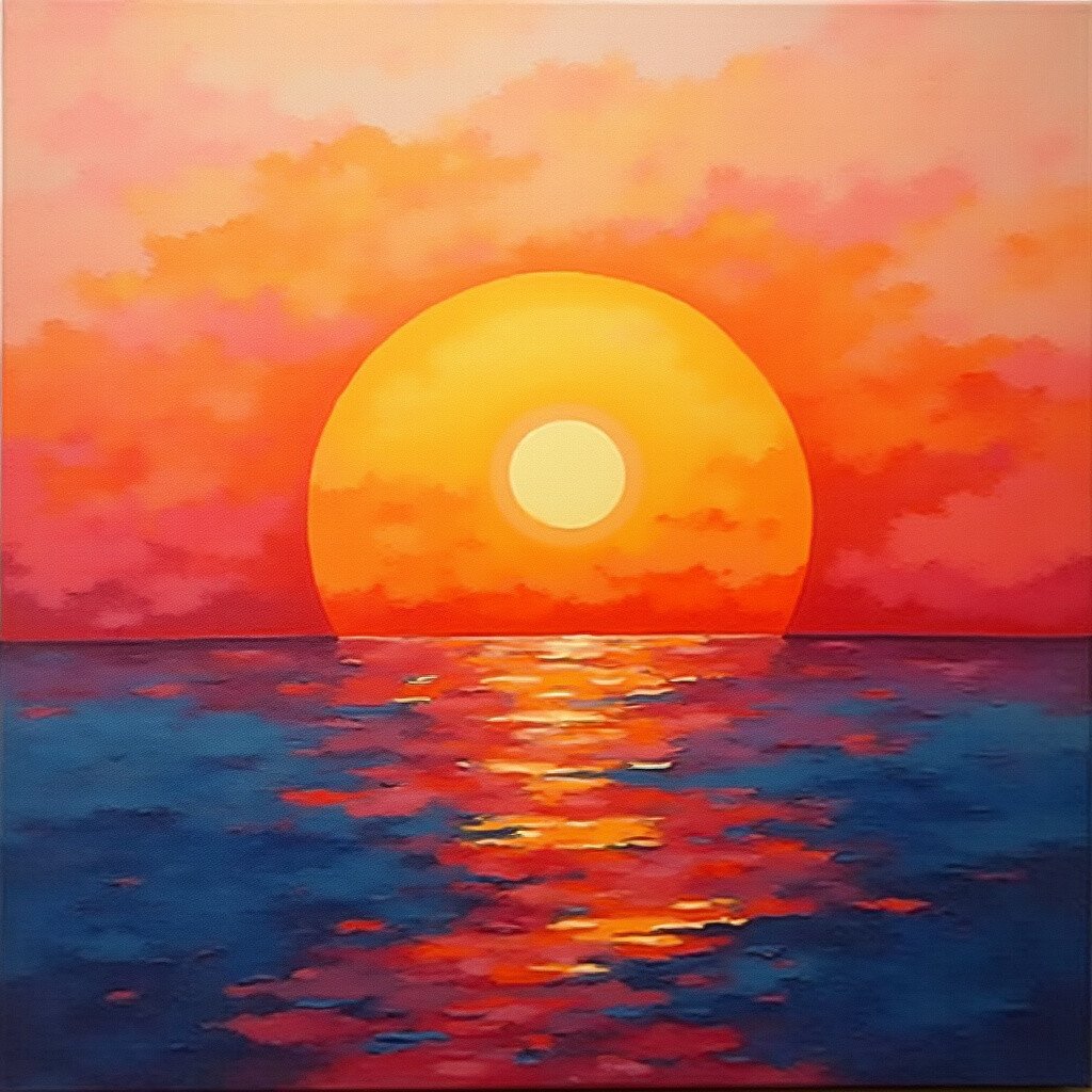 Sometimes less is more. A minimalist sunset might use just two or three colors in broad, sweeping strokes. It’s simple yet powerful.