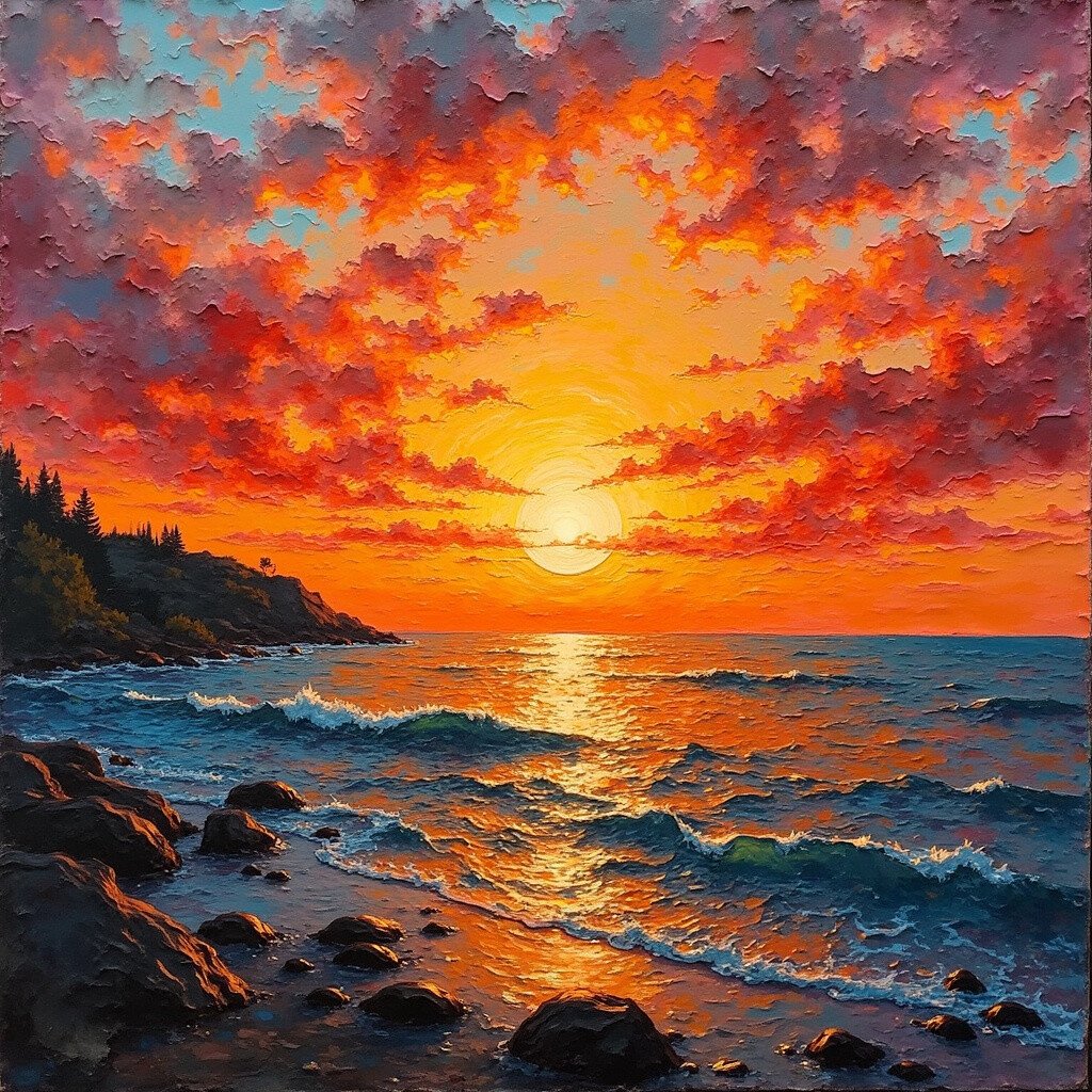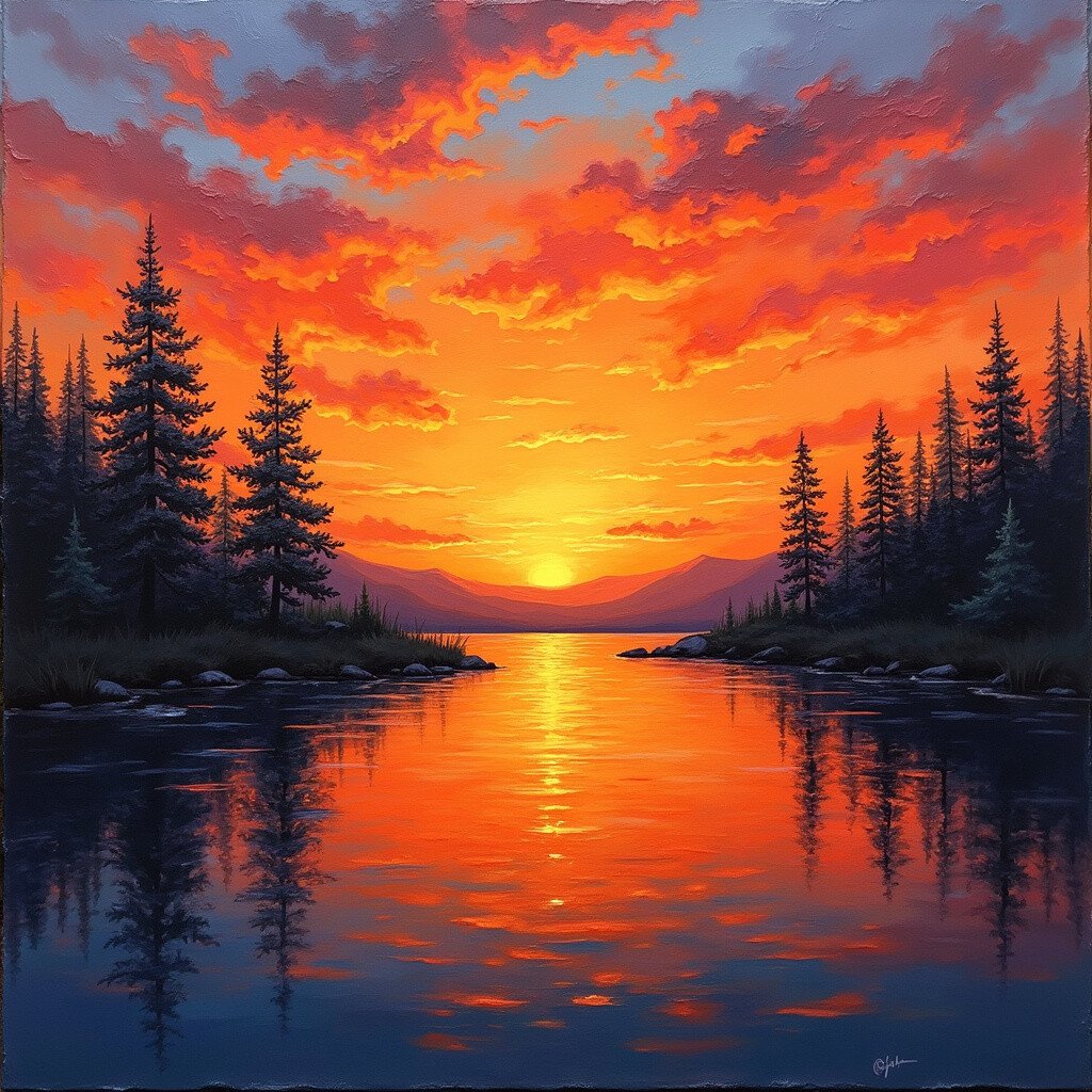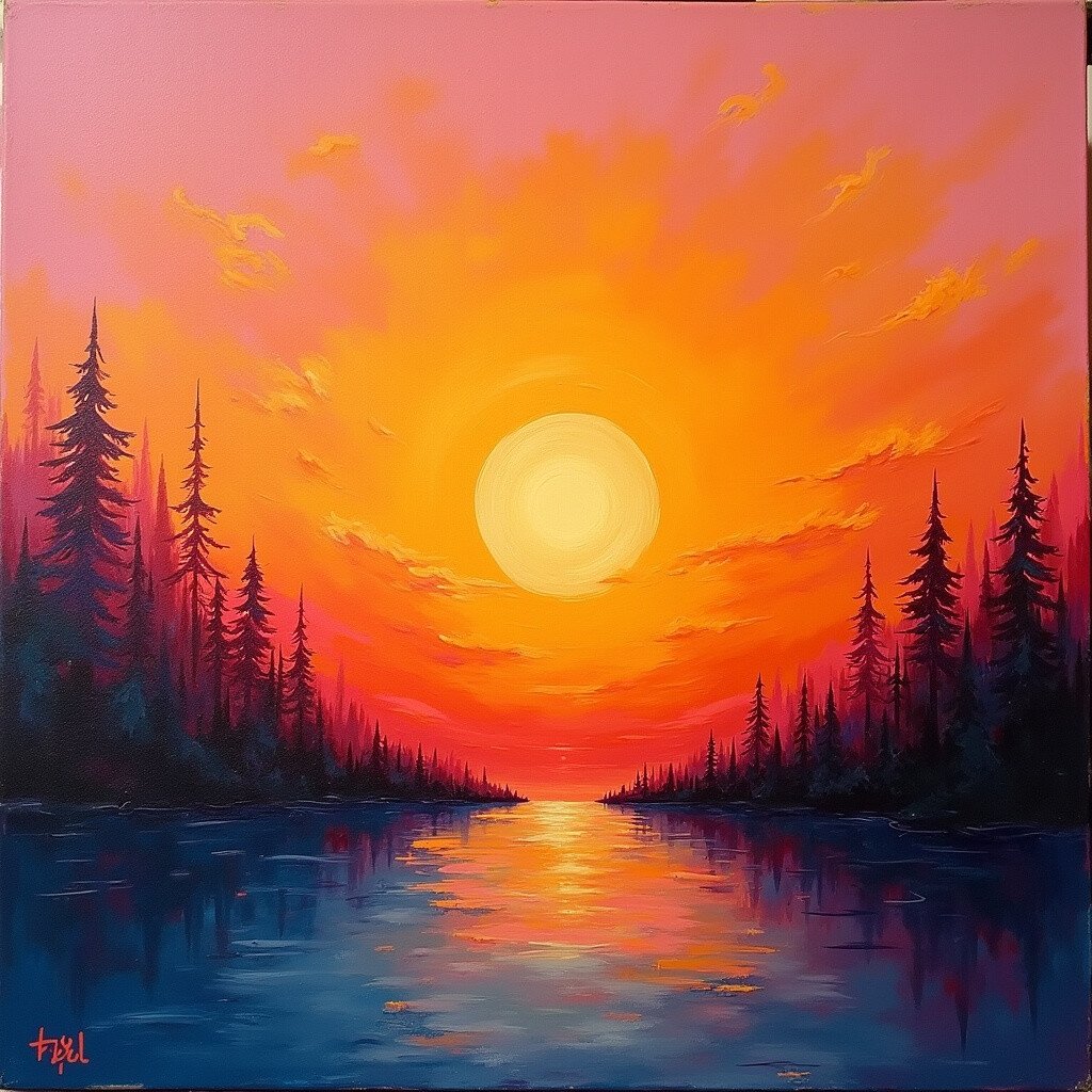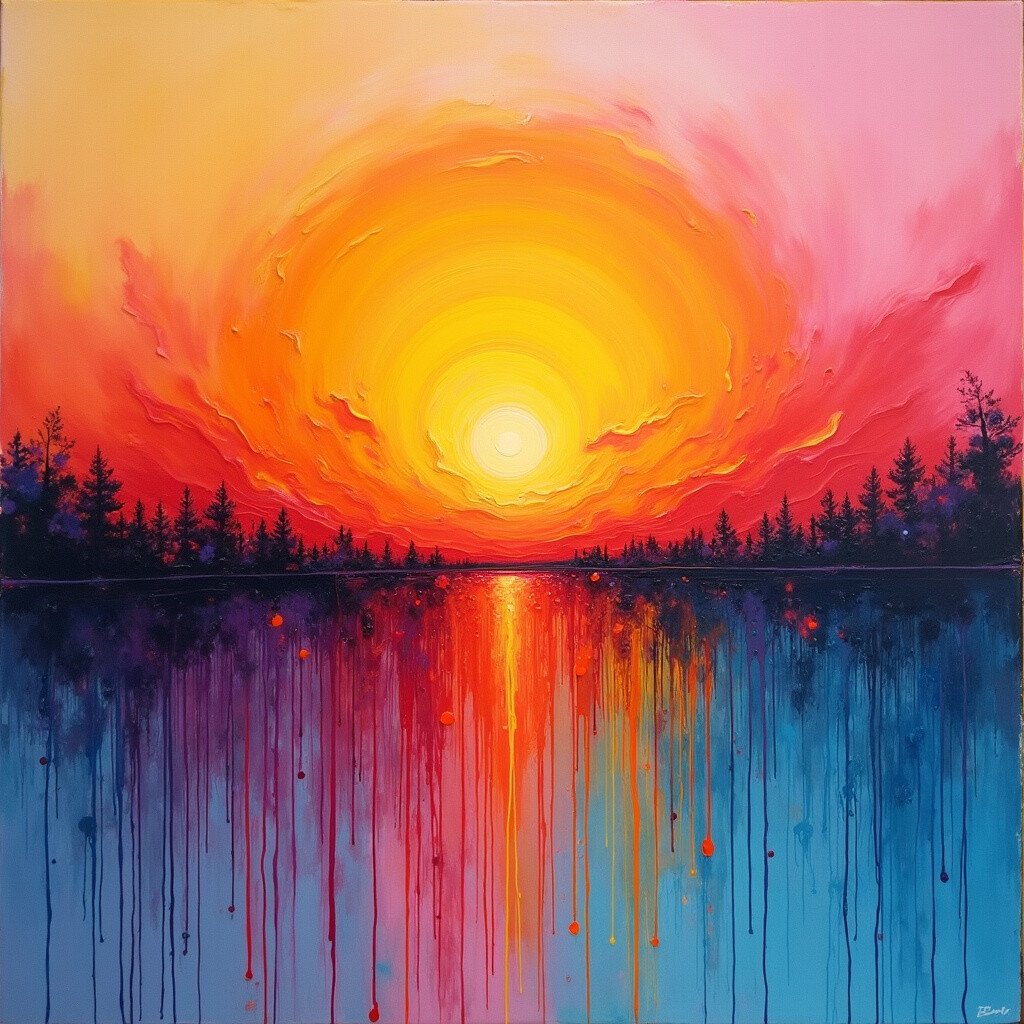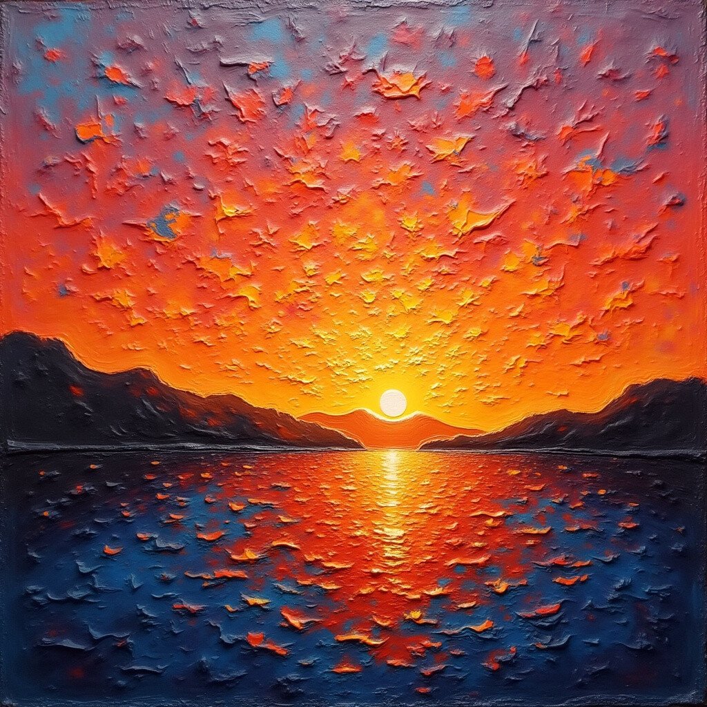 Sometimes less is more. A minimalist sunset might use just two or three colors in broad, sweeping strokes. It’s simple yet powerful.