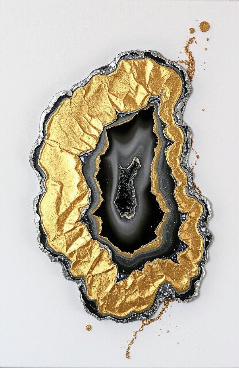 This technique mimics the look of sliced geodes, with their intricate patterns and shiny surfaces. Use a palette knife for creating sharp, rocky edges and sprinkle some glitter for that extra sparkle.