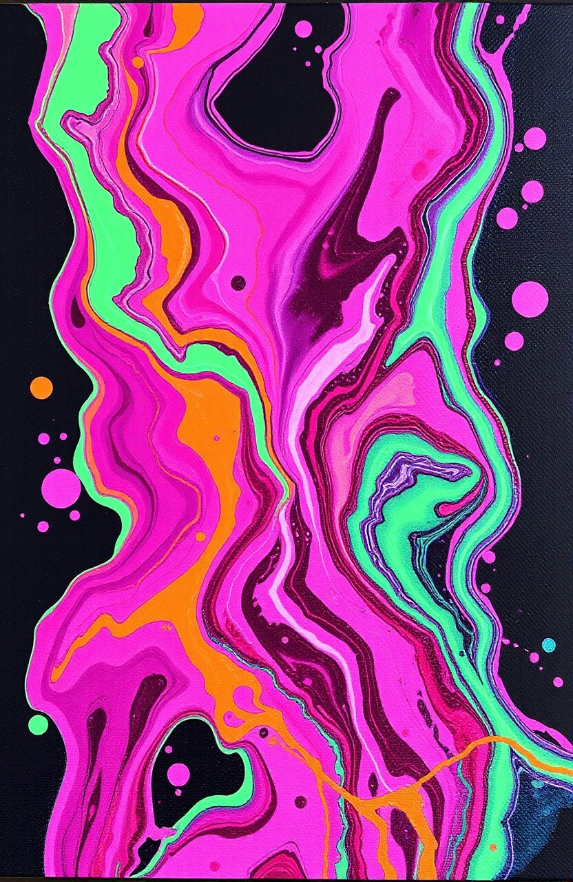 Bring a burst of fun with a bubblegum pop pour. Use bright pinks, purples, and blues for a lively, energetic piece.