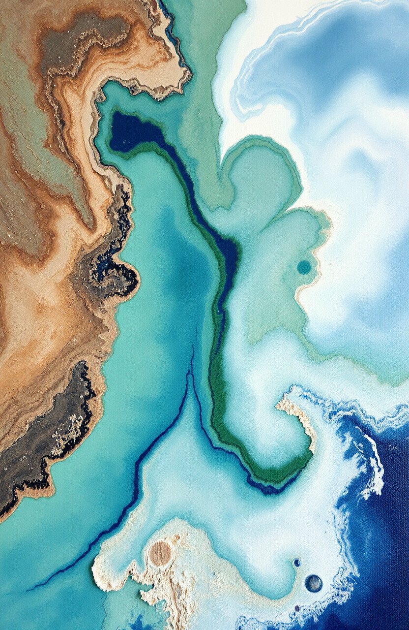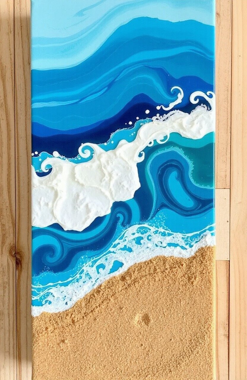 Bring the serenity of the ocean into your home with an ocean wave pour. Use shades of blue, turquoise, and white to create the rolling waves and sea foam.