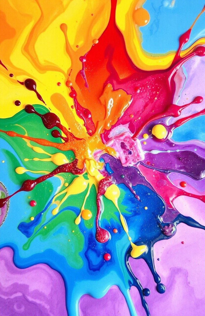 Brighten any room with a rainbow splash pour. Layer the colors of the rainbow and tilt the canvas to let them flow and blend.