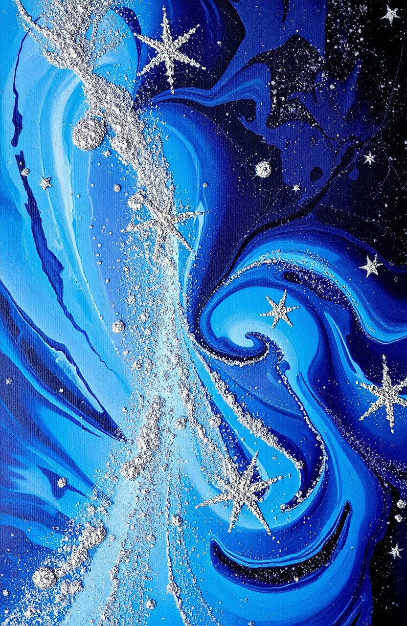 Ever wanted to capture the universe on canvas? Galaxy pours let you swirl deep blues, purples, and shimmering whites to mimic the night sky. Add metallic silver for stars and watch your creation light up.