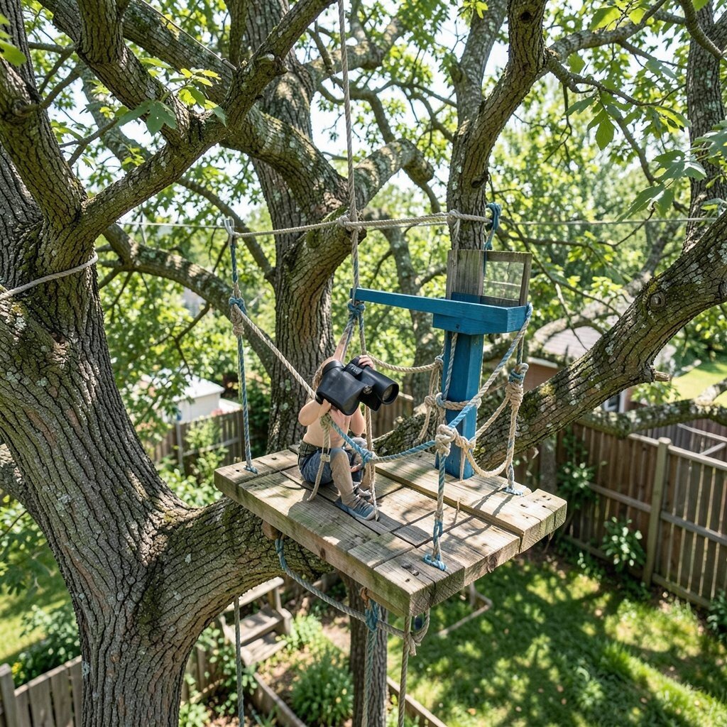 High above, in the branches of a tree, sits a hidden perch. The treetop lookout is perfect for those who love adventure and a bit of climbing. It’s a place to observe and hide, all at once.