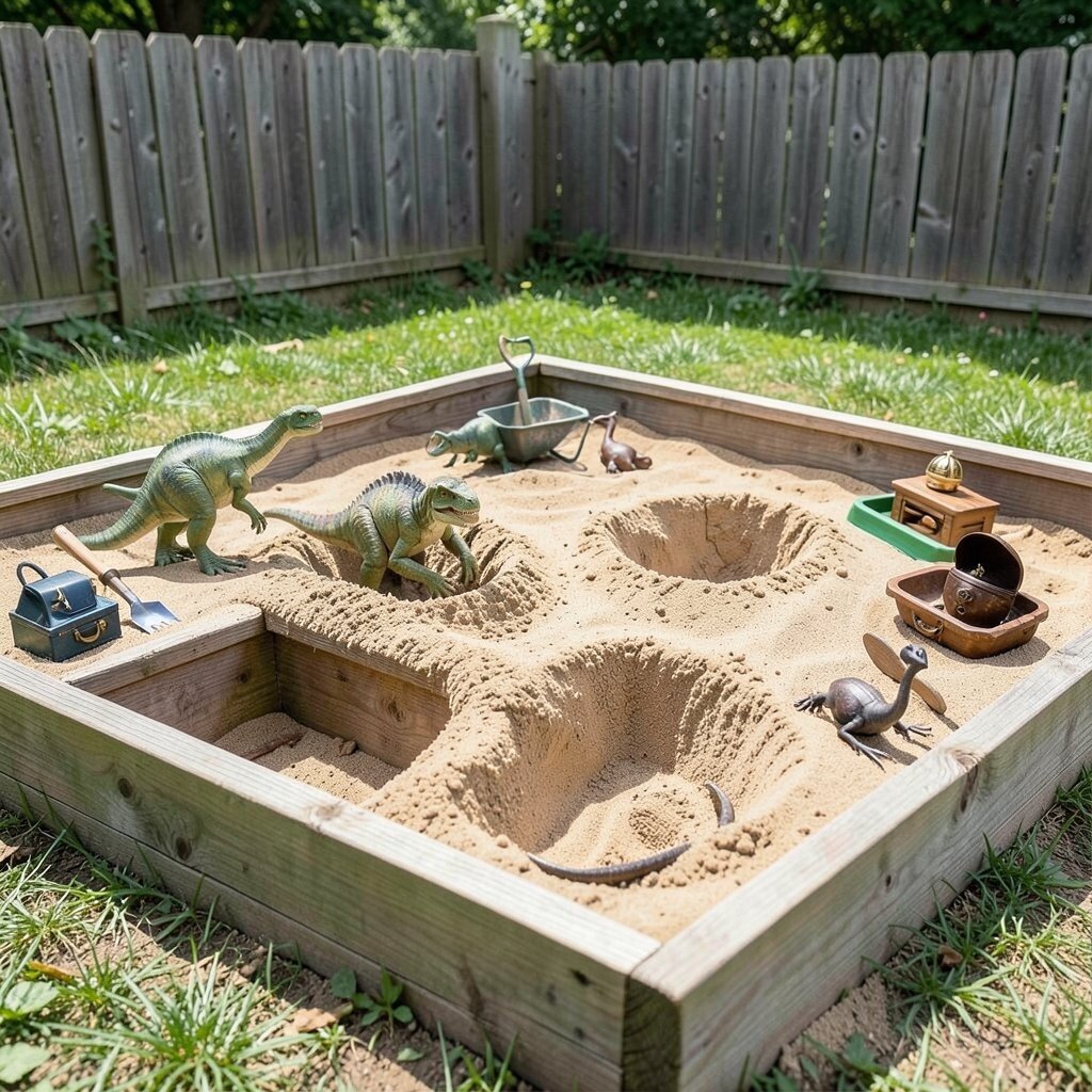Sandpits are budget-friendly and can be easily set up with a wooden frame and some play sand. Personalize the space with toy dinosaurs or pirate treasures for themed adventures. The tactile experience of sand adds a sensory element to the fun.