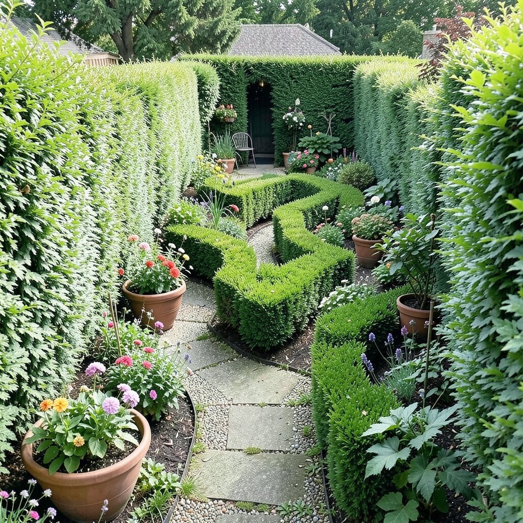 Picture a winding path made of tall hedges, leading to a secret hideout. This isn’t just a maze; it’s a journey filled with twists and turns. The beauty of a garden maze lies in its ability to blend into your backyard, offering a natural and exciting hiding place.