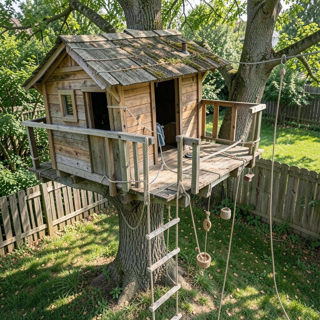 The uniqueness of a treehouse lies in its elevation, offering a bird’s-eye view of the surroundings. To personalize, add a rope ladder or a pulley system for snacks. The cost can be managed by using reclaimed wood or repurposing materials.
