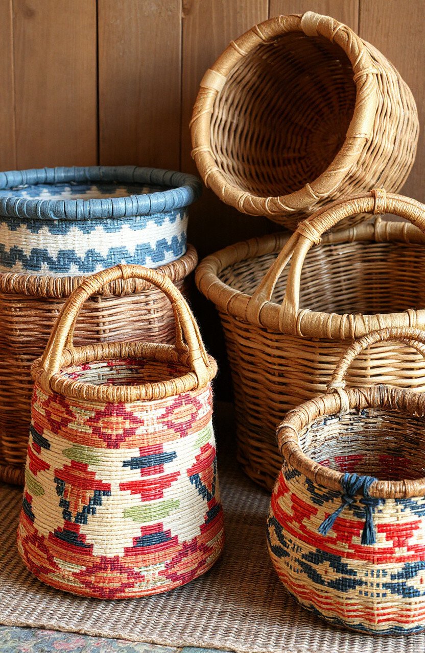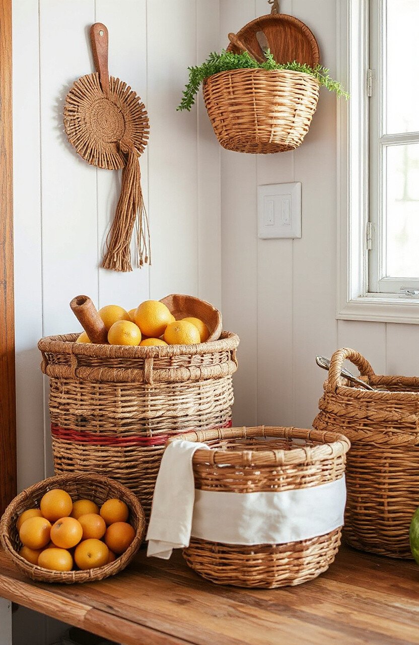 Channel the charm of a countryside home with rustic baskets. Use materials like jute or burlap for that old-world feel.