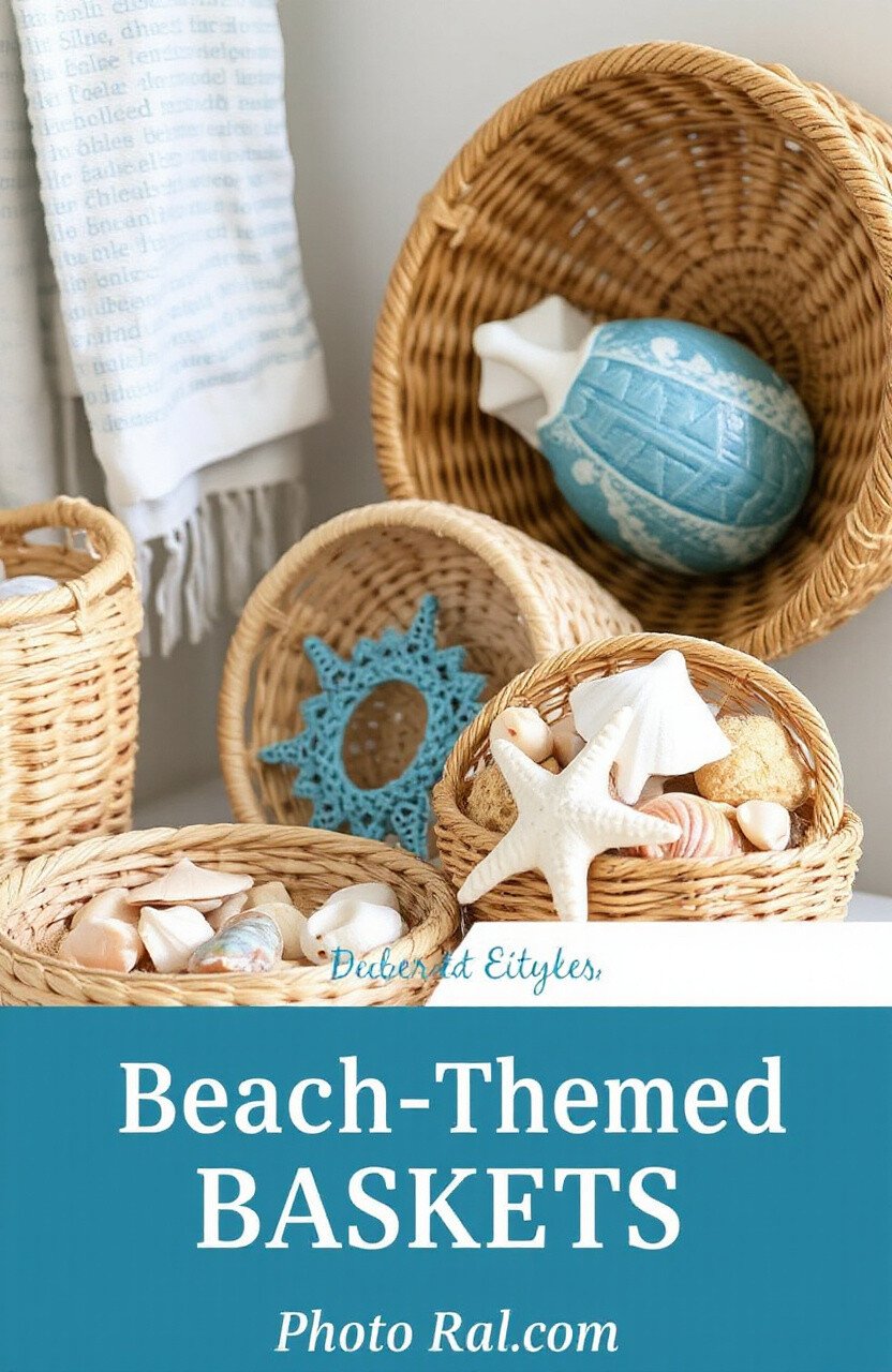 Bring a bit of the ocean into your home with beach-themed baskets. Incorporate seashells, sand-colored materials, and blue accents.