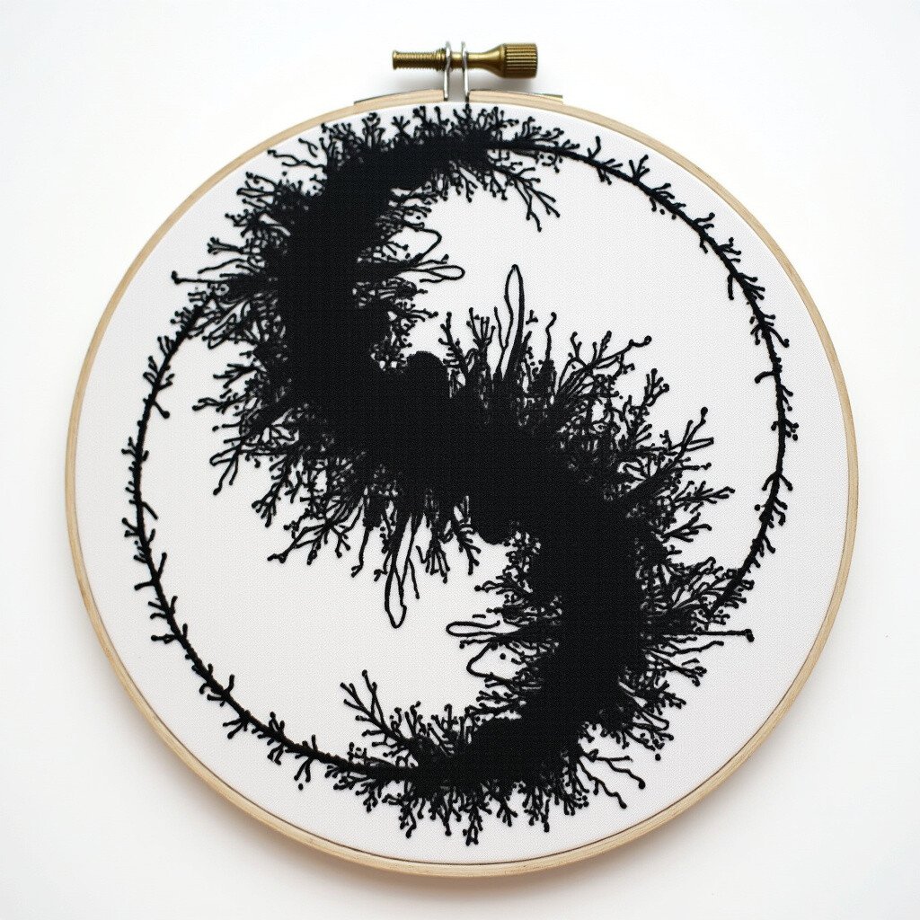 Ink embroidery combines the precision of stitching with the boldness of black ink. You can draw a design and then embroider over it, creating a textured, multi-dimensional effect.