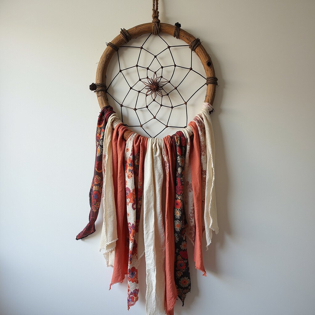 Fabrics can add movement to your dream catcher. They’re easy to tie and adjust. Use them to create a cascading effect for added drama.