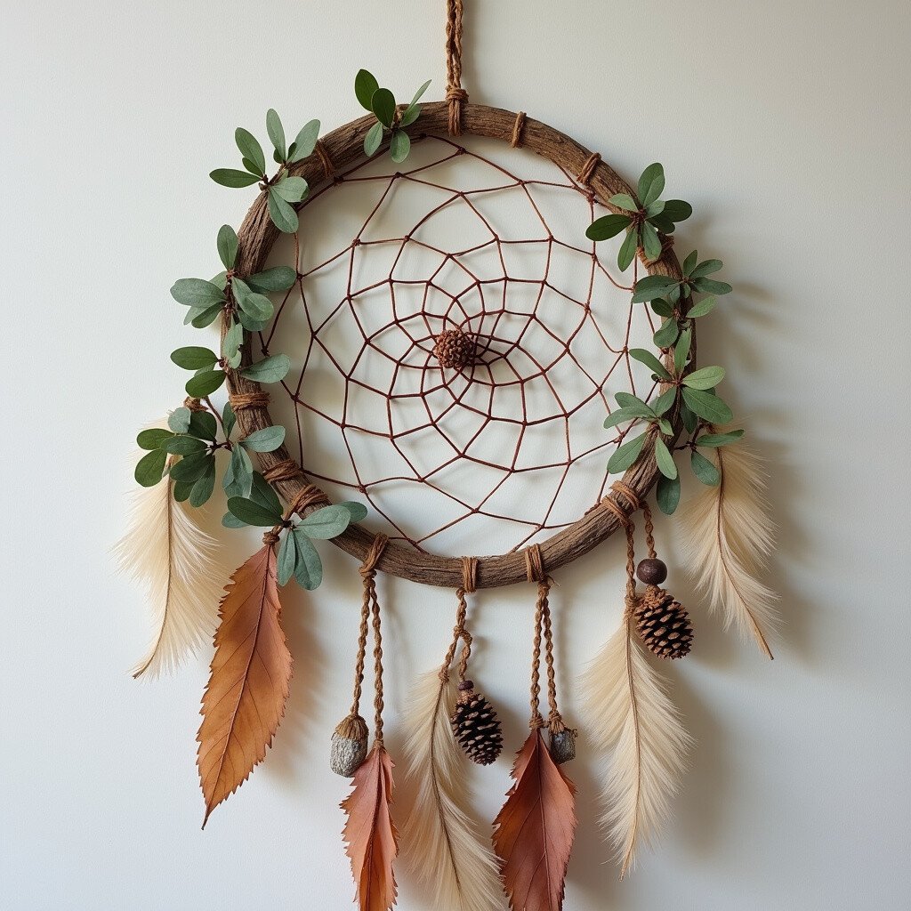 Collect and add nature-inspired charms like leaves, pinecones, or small branches. These elements bring the outdoors inside. They give an earthy, grounded feel to your dream catcher.