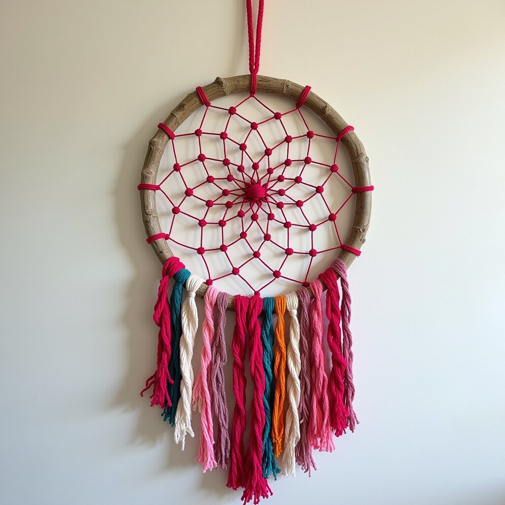 Create a crochet web for the center of your dream catcher. This adds a delicate, handmade touch. It’s perfect for those who love to crochet or want to learn.