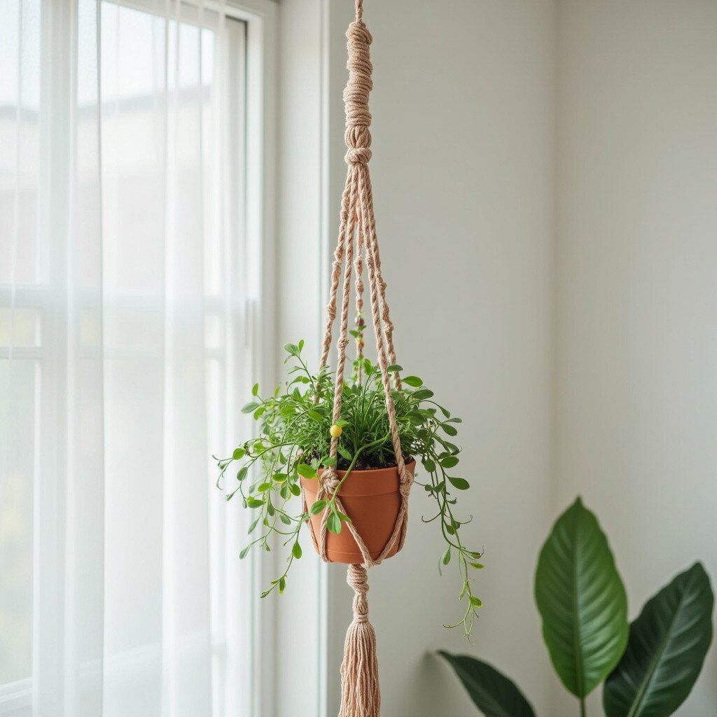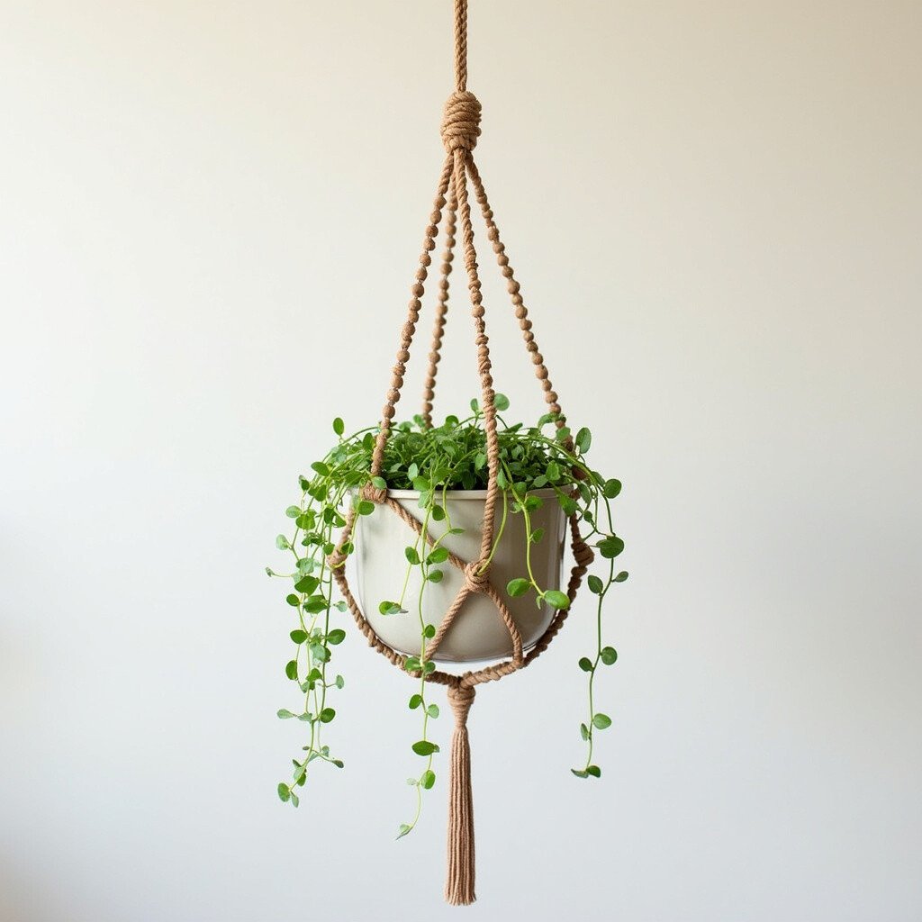 Jute is a natural fiber that makes for rustic and charming plant hangers. Its earthy tones are perfect for achieving a boho aesthetic.