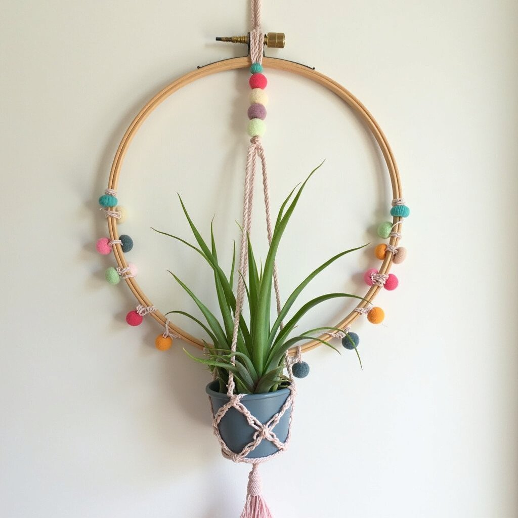 You can paint or decorate the hoops to match your style, and they work well with air plants or small potted plants.