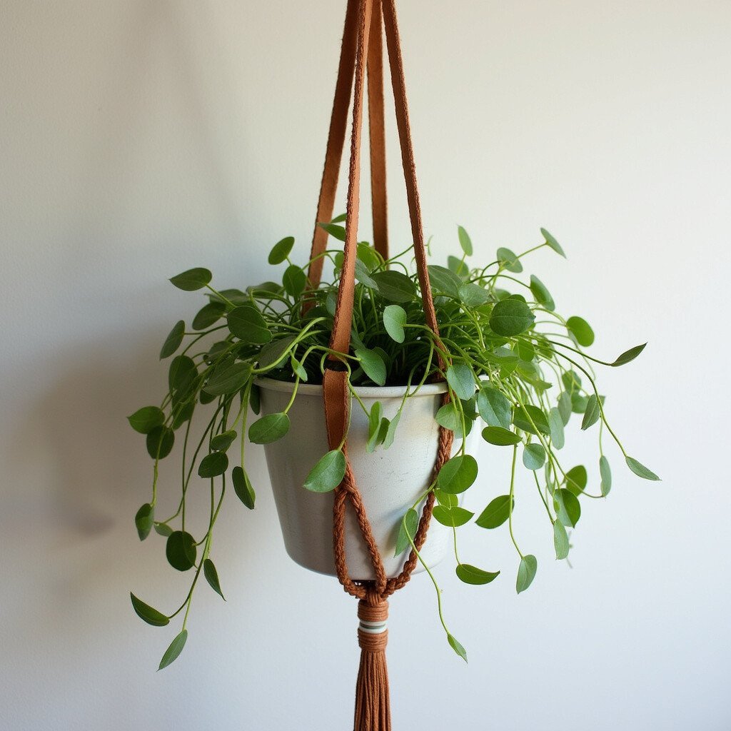 Leather is durable and can support heavier plants. Plus, its natural tones blend beautifully with the greens of your plants.
