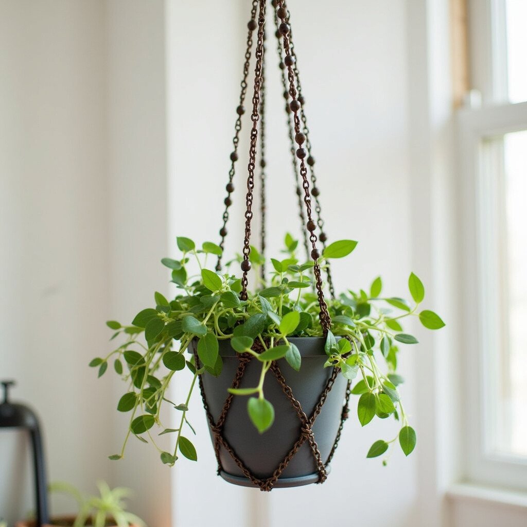 Use metal chains or wires for a sleek and industrial plant hanger. They’re great for adding a touch of sophistication to your greenery.