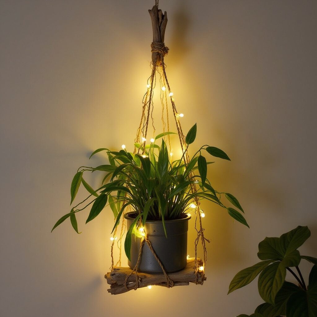 This idea is great for creating a cozy nook or highlighting your plant at night. Battery-operated lights are safe and easy to use.