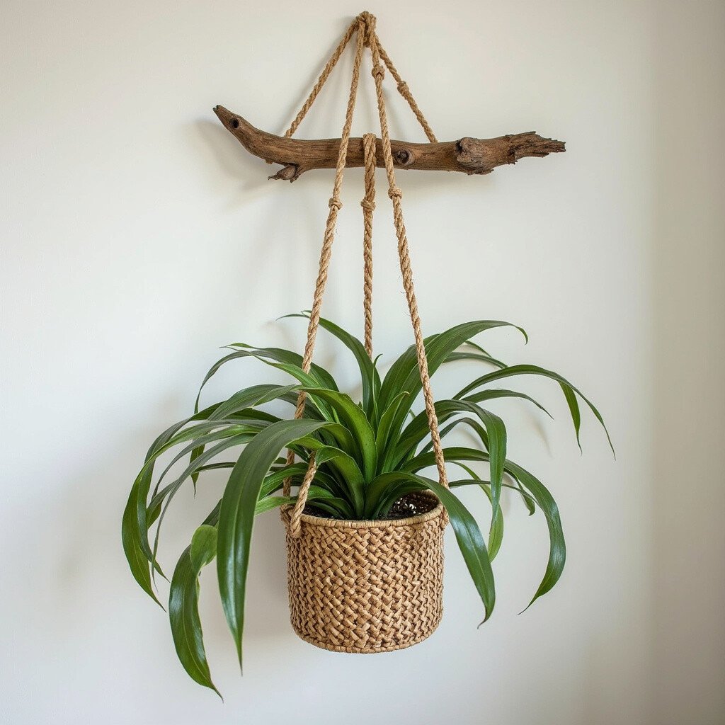 For those who love simplicity, a minimalist driftwood hanger is perfect. A single piece of driftwood with clean lines can hold a small pot with grace.