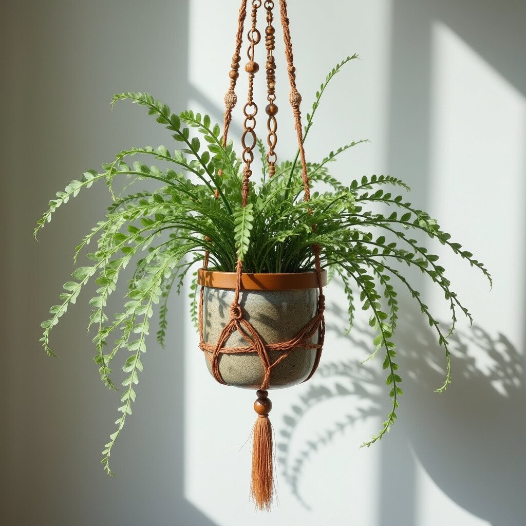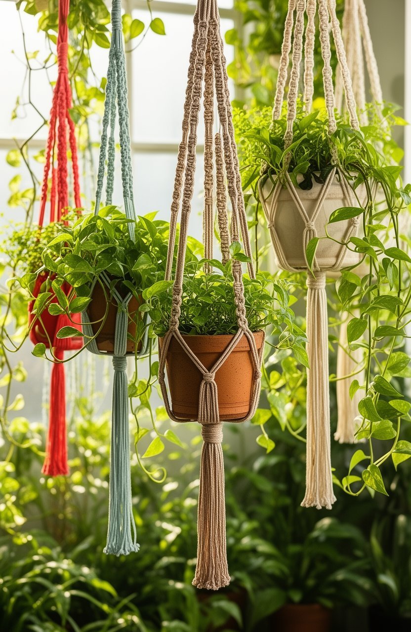 Macramé plant hangers have made a roaring comeback, and for good reason. Their intricate knots and patterns are a feast for the eyes, creating a textured backdrop for your plants. Adding feathers to the mix introduces a playful element that makes each hanger a piece of art.