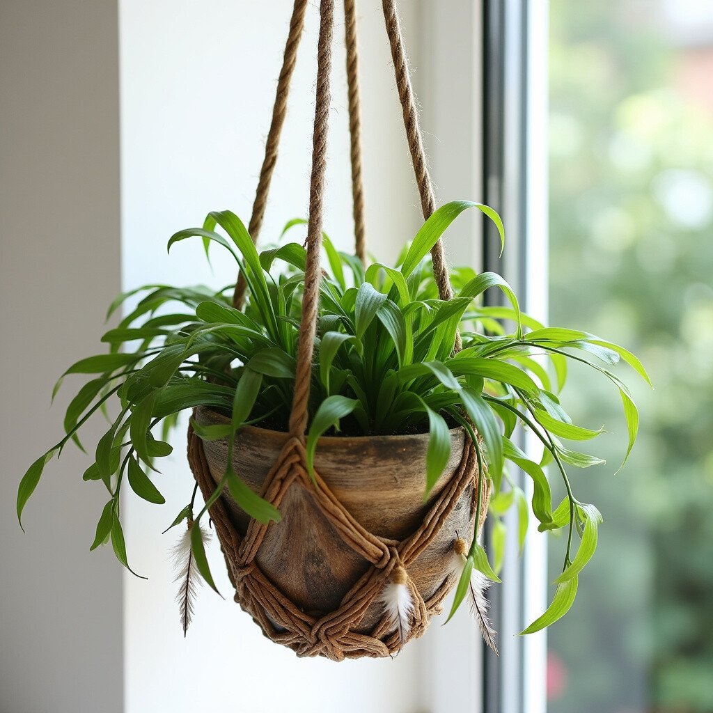 Sometimes, simplicity is the key to elegance. Twine plant hangers offer a minimalist look that highlights the beauty of both the plant and the feathers. The natural color and texture of twine complement the organic feel of feathers.