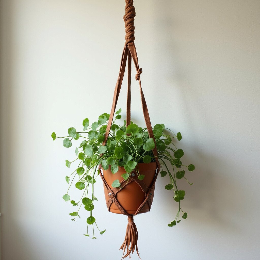 Leather hangers are durable and can support heavier plants, making them a practical choice. You can find leather remnants at craft stores or repurpose materials from old belts or bags. Adding feathers to the design softens the look, creating a perfect balance between rugged and refined.