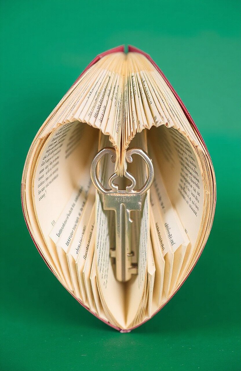 A key folded from book pages is a symbol of unlocking possibilities. Perfect for those who love mystery and adventure. It’s intriguing!