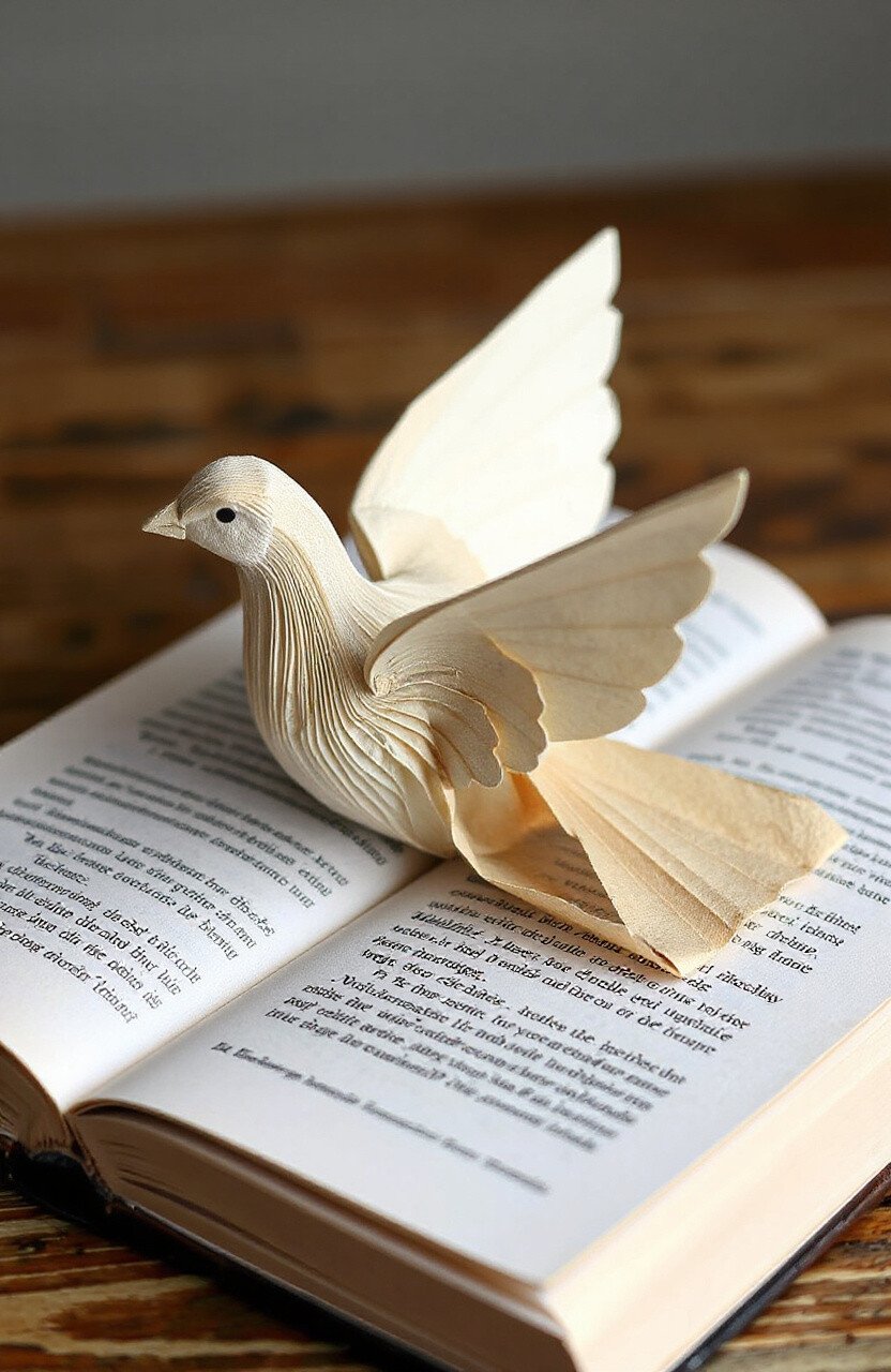 A dove folded from book pages is calm and peaceful. Perfect for creating a serene atmosphere. It’s a symbol of tranquility!