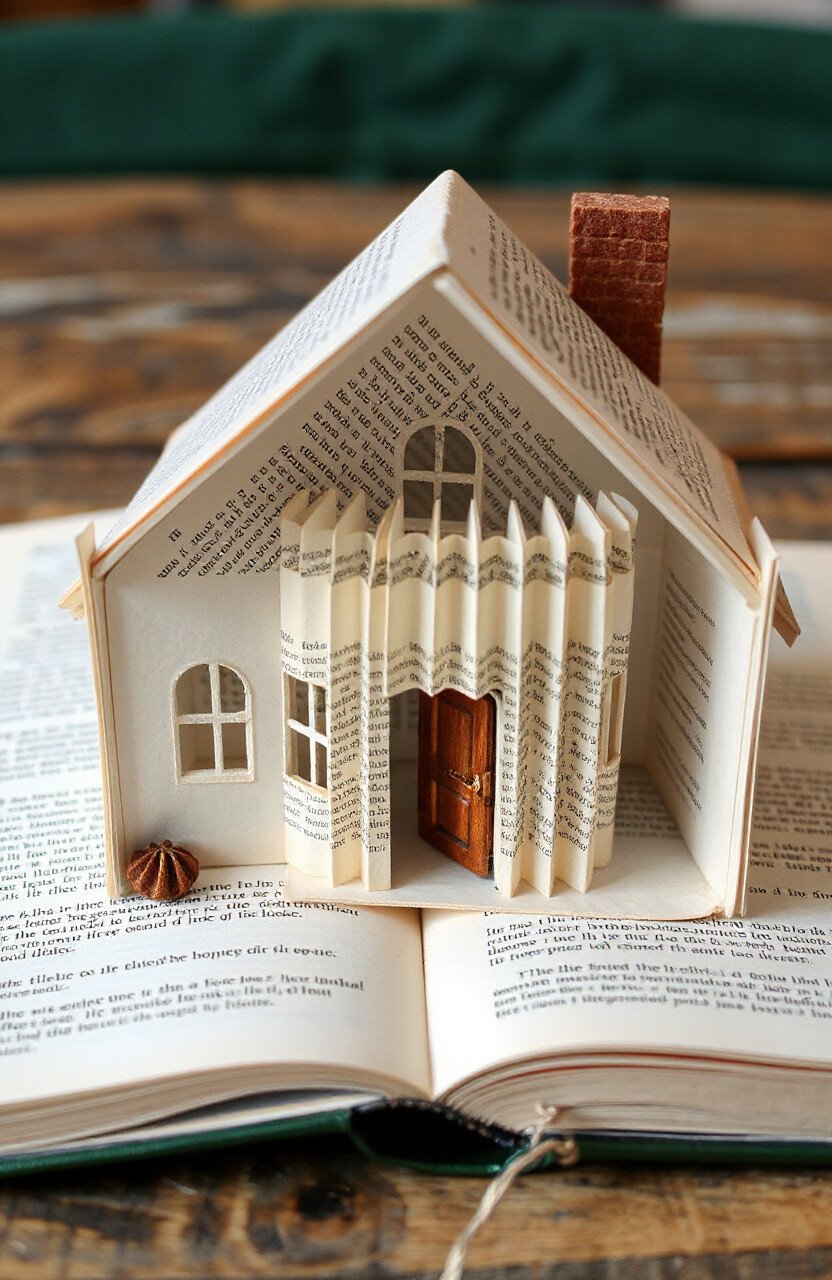 Fold a quaint little house from book pages. It’s cozy and inviting. Ideal for those who love home décor!