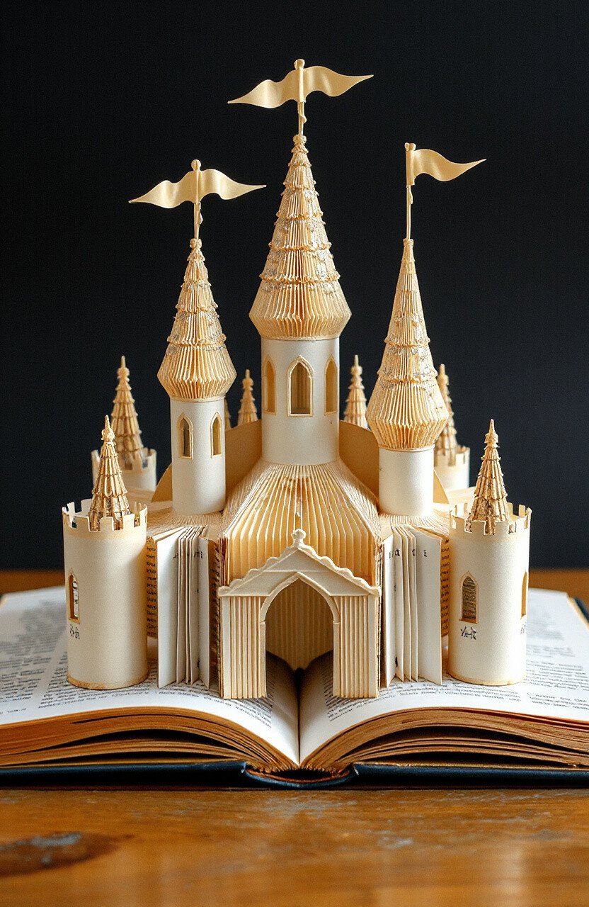 A castle folded from book pages is enchanting and grand. Perfect for those who love fairy tales. It’s a magical kingdom!