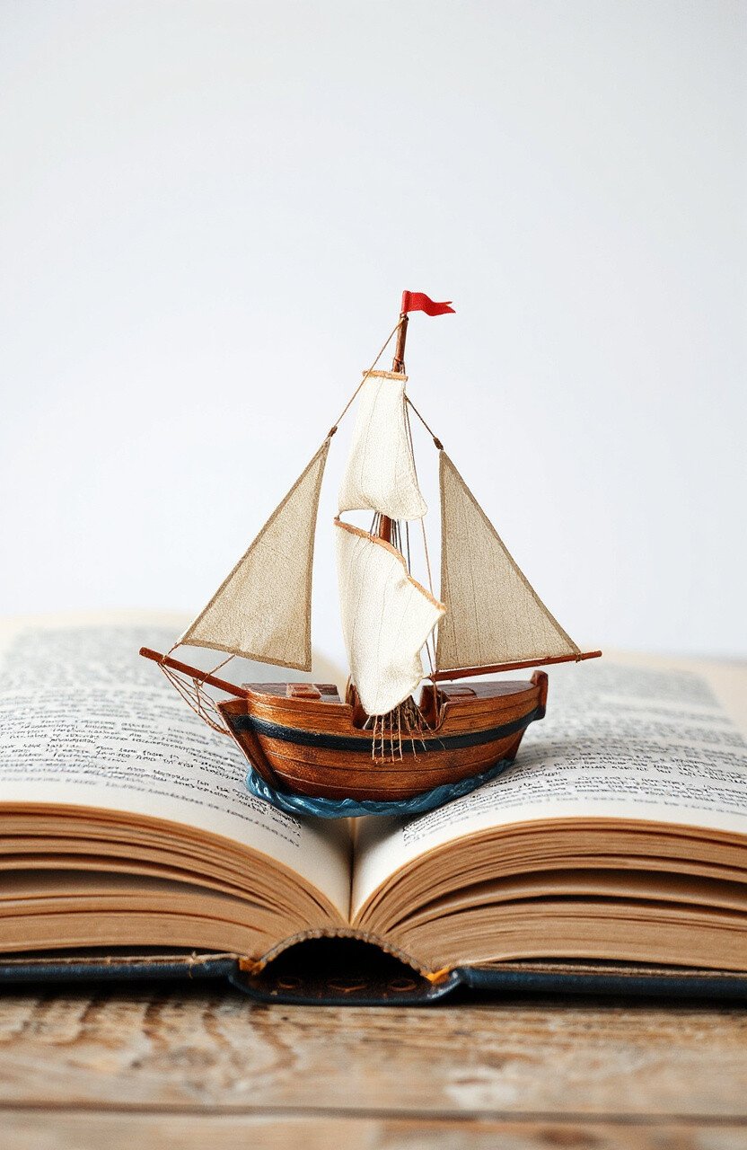 A ship sailing out of a book is adventurous and bold. Perfect for explorers and sea lovers. It’s a voyage of imagination!
