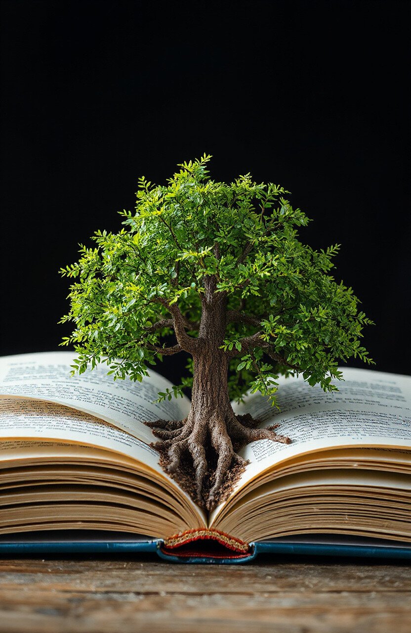 A tree growing from the pages symbolizes wisdom. It’s a powerful and inspiring piece. Ideal for libraries and study rooms!