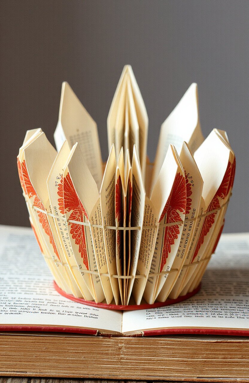 A crown folded from book pages is regal and majestic. Perfect for those who love a touch of royalty. It’s fit for a king or queen!