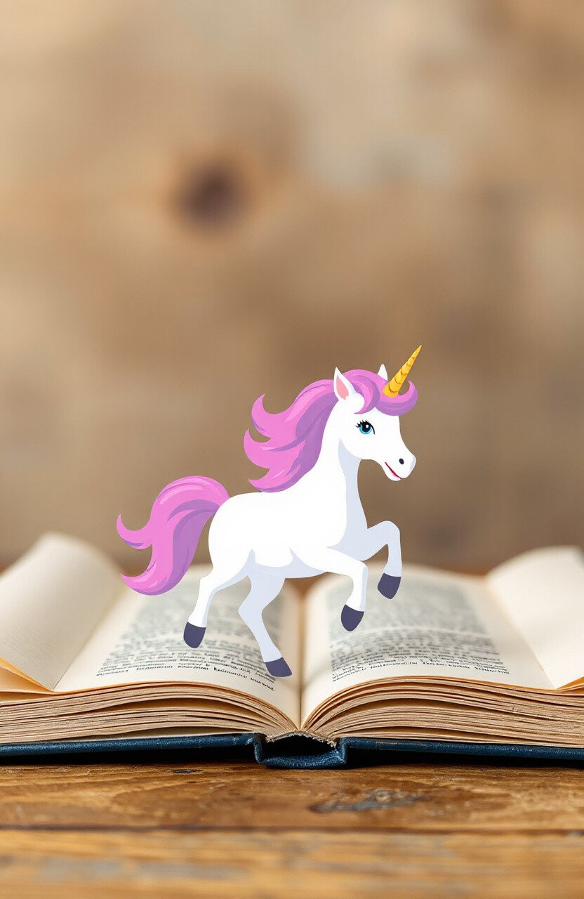 A unicorn galloping from a book is whimsical and magical. Perfect for children’s rooms. It’s a mythical delight!
