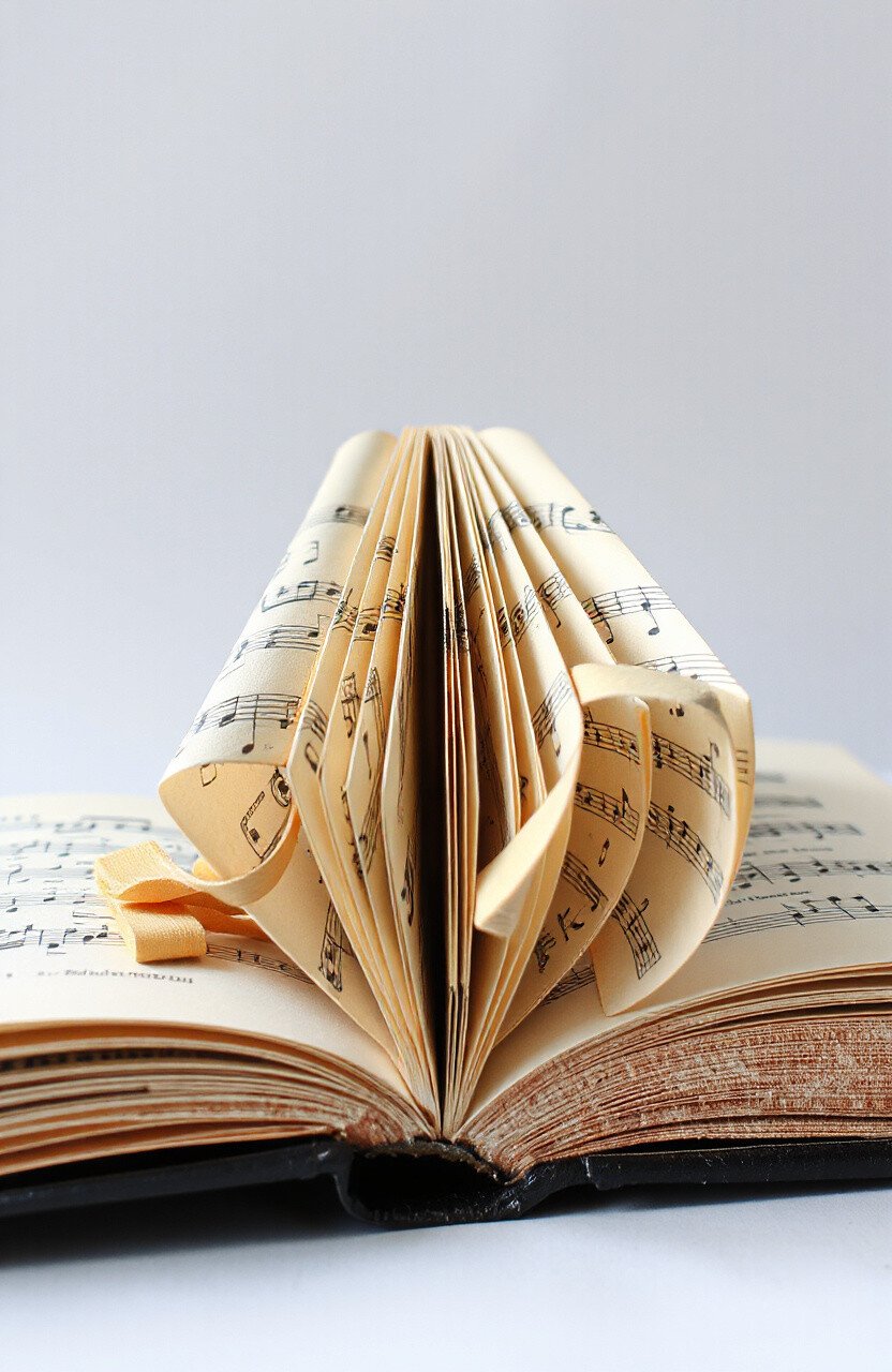 Folding musical notes into a book brings a melody to the eyes. Perfect for music lovers! It’s a visual symphony.