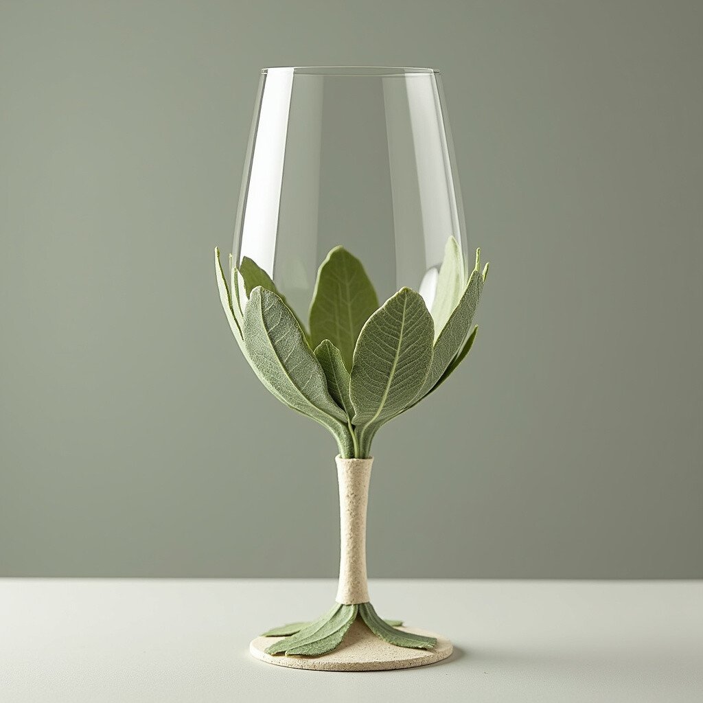 Sage leaves offer a soothing and earthy touch. Attach them to the base and stem of the glass for a calm, peaceful design paired with a cream accent.
