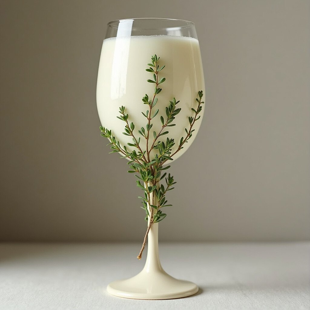 Thyme leaves provide a subtle and aromatic touch. Attach them to the stem and base for a simple, yet elegant design against a cream-painted glass.