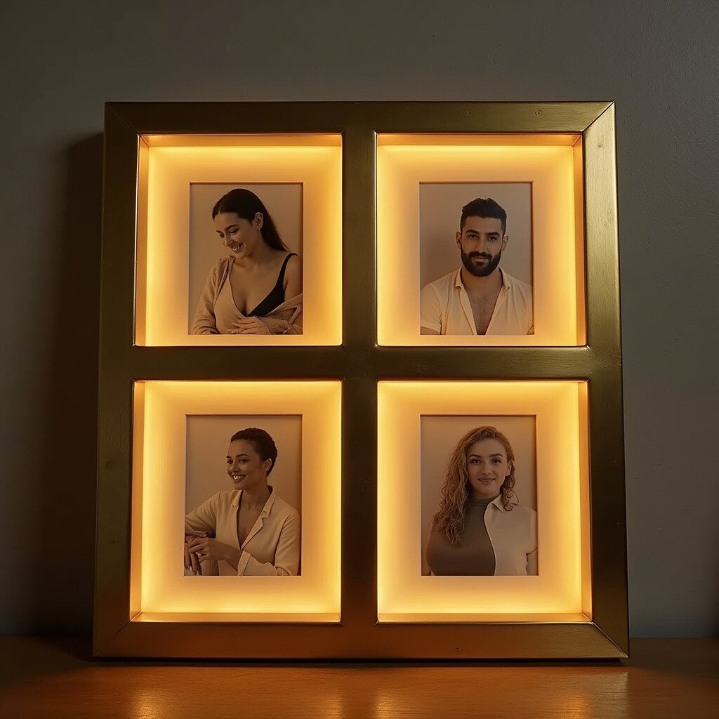 Illuminate your memories with a brass frame that includes LED lighting. These frames add a soft glow to your photos, making them stand out, especially at night.