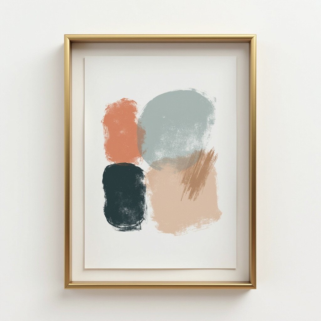 Make a statement with a brass frame that features abstract art. It combines modern art with the elegance of brass, perfect for adding a creative flair to your home.