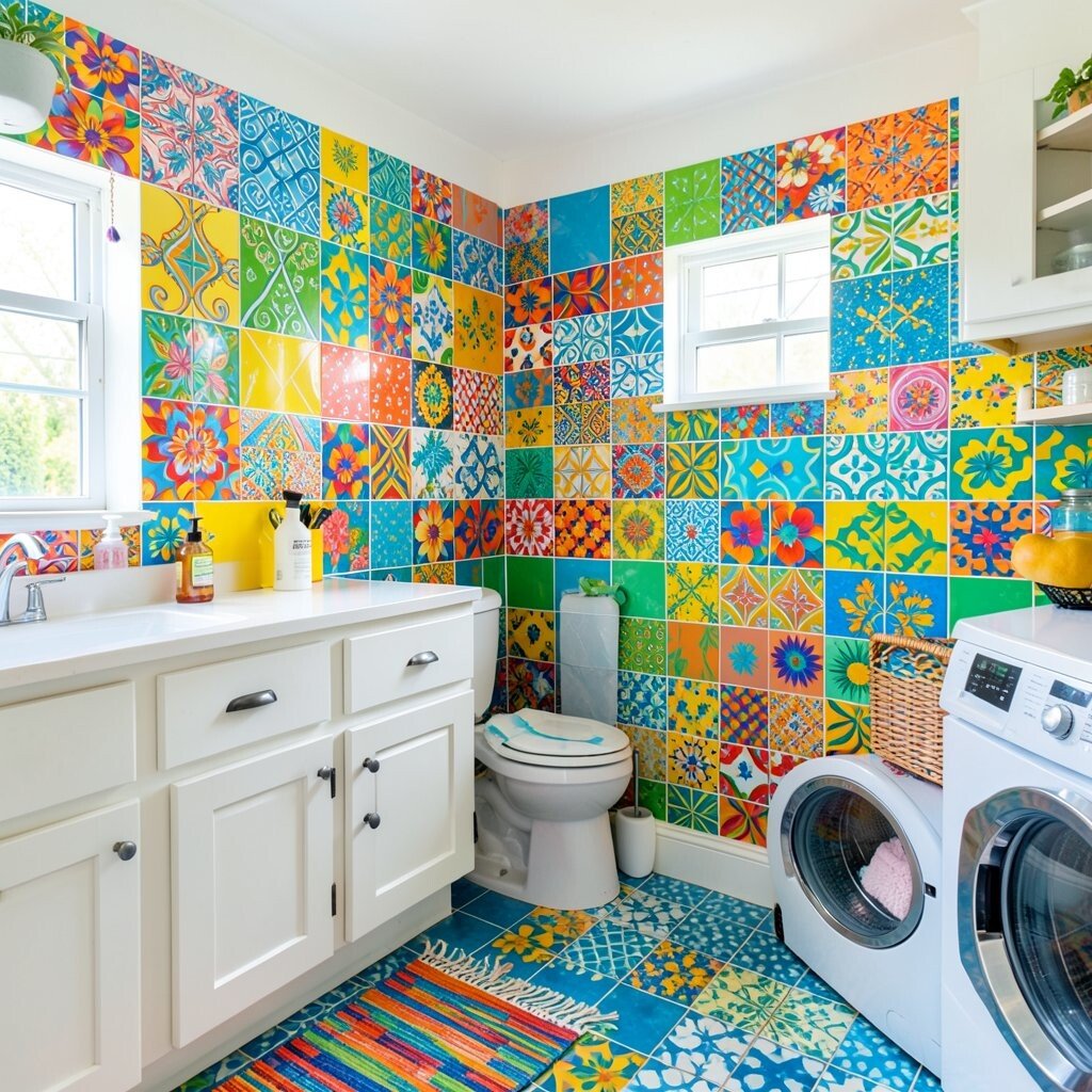 Backsplashes aren’t just for the kitchen! They can add a pop of color to your bathroom or laundry room too. Tiles in bright colors or patterns can make a big statement.
