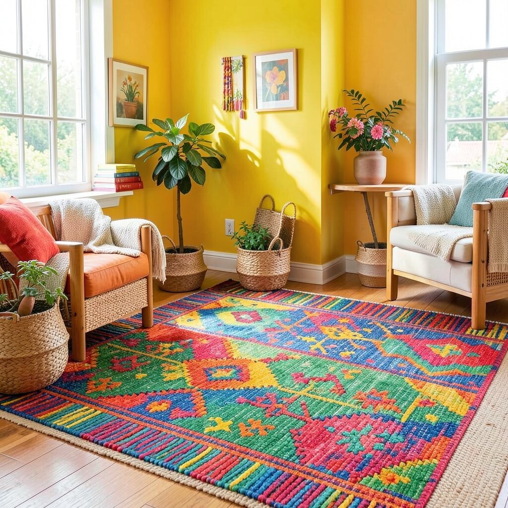 Jute rugs are natural and earthy, but they can also be colorful! Look for ones with bright patterns or dyed fibers. They’re perfect for adding texture and color.