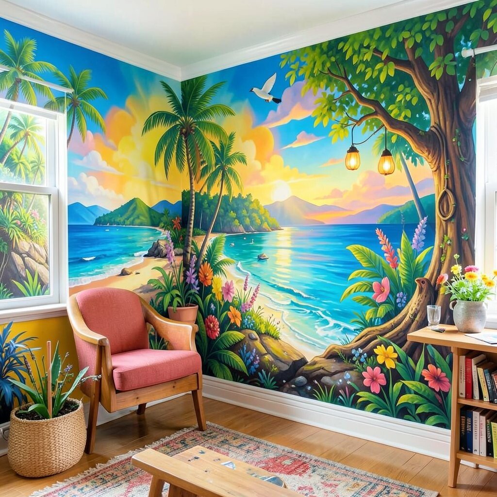 Wall murals are like giant pictures on your wall. They can show anything from a tropical beach to a magical forest. You can use them to make your room feel like a different world.