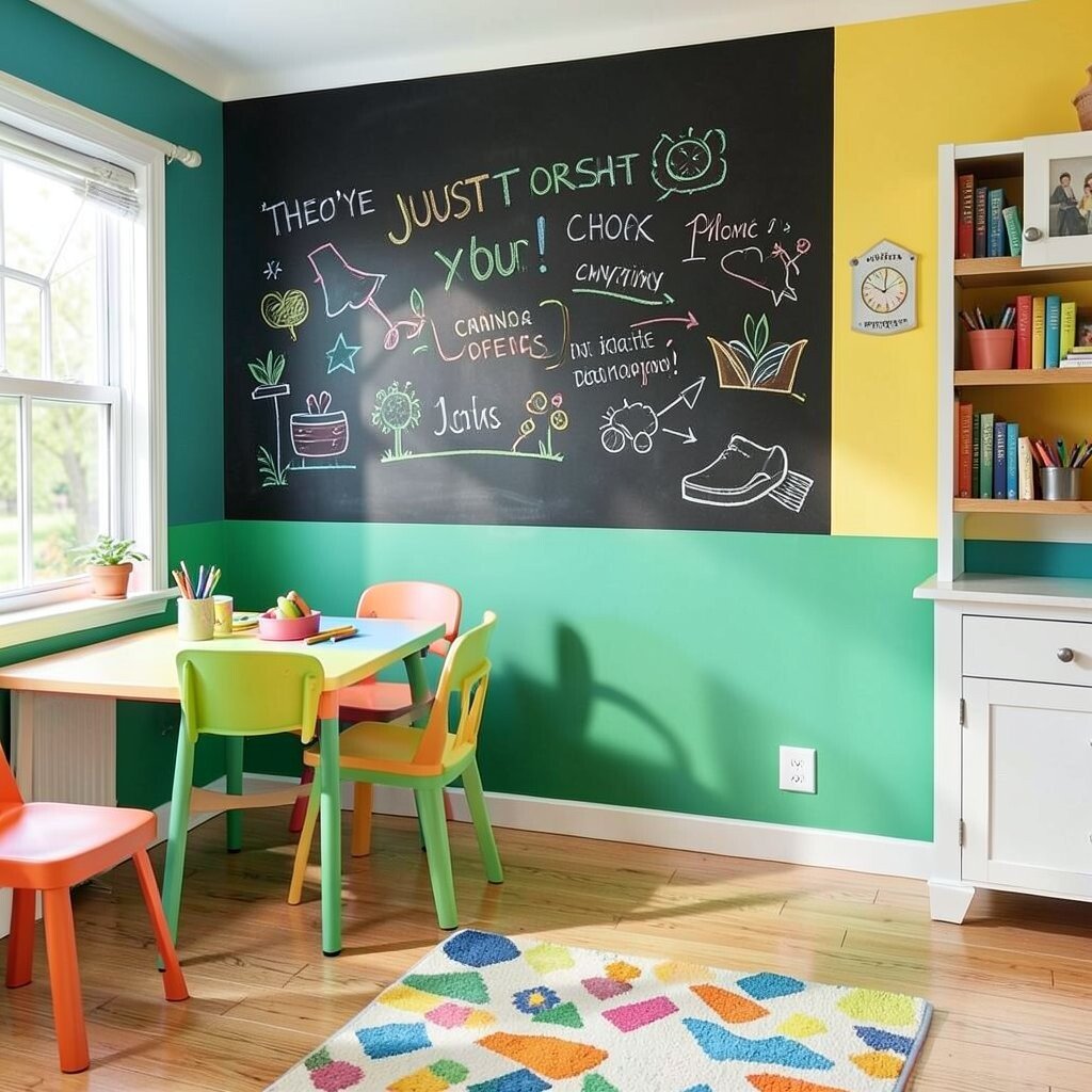 Chalkboards aren’t just for school! Paint a section of your wall with chalkboard paint for a fun and functional feature. You can write messages or draw pictures to change the look anytime.
