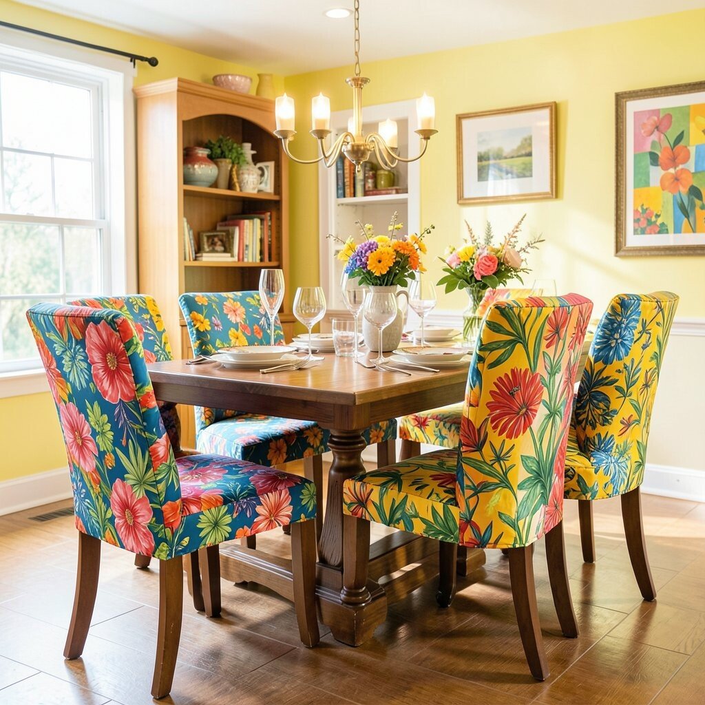 Seat covers are like outfits for your chairs. Choose fabrics in bright colors or patterns to give old chairs a new life. They’re an easy way to refresh your dining area.