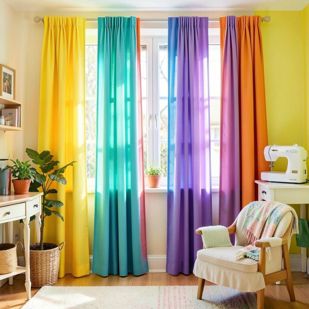 Try layering different colored curtains for a playful look. You can even make your own with fabric and a sewing machine.